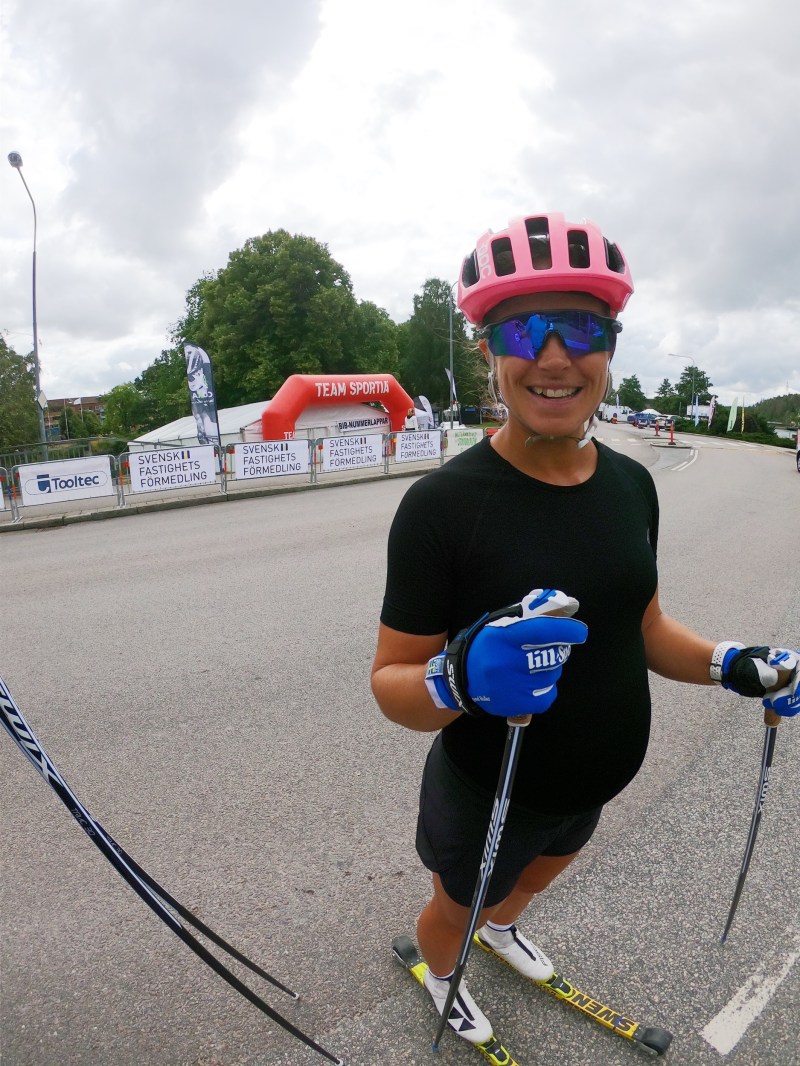 Men när vi kom ner i start-och målområdet, jag fick sätta på mig mina lånade rullskidor och staka iväg lite så ramlade alla nerver rätt. Det kändes okay, nästan bra! Men framför allt kändes det kul!